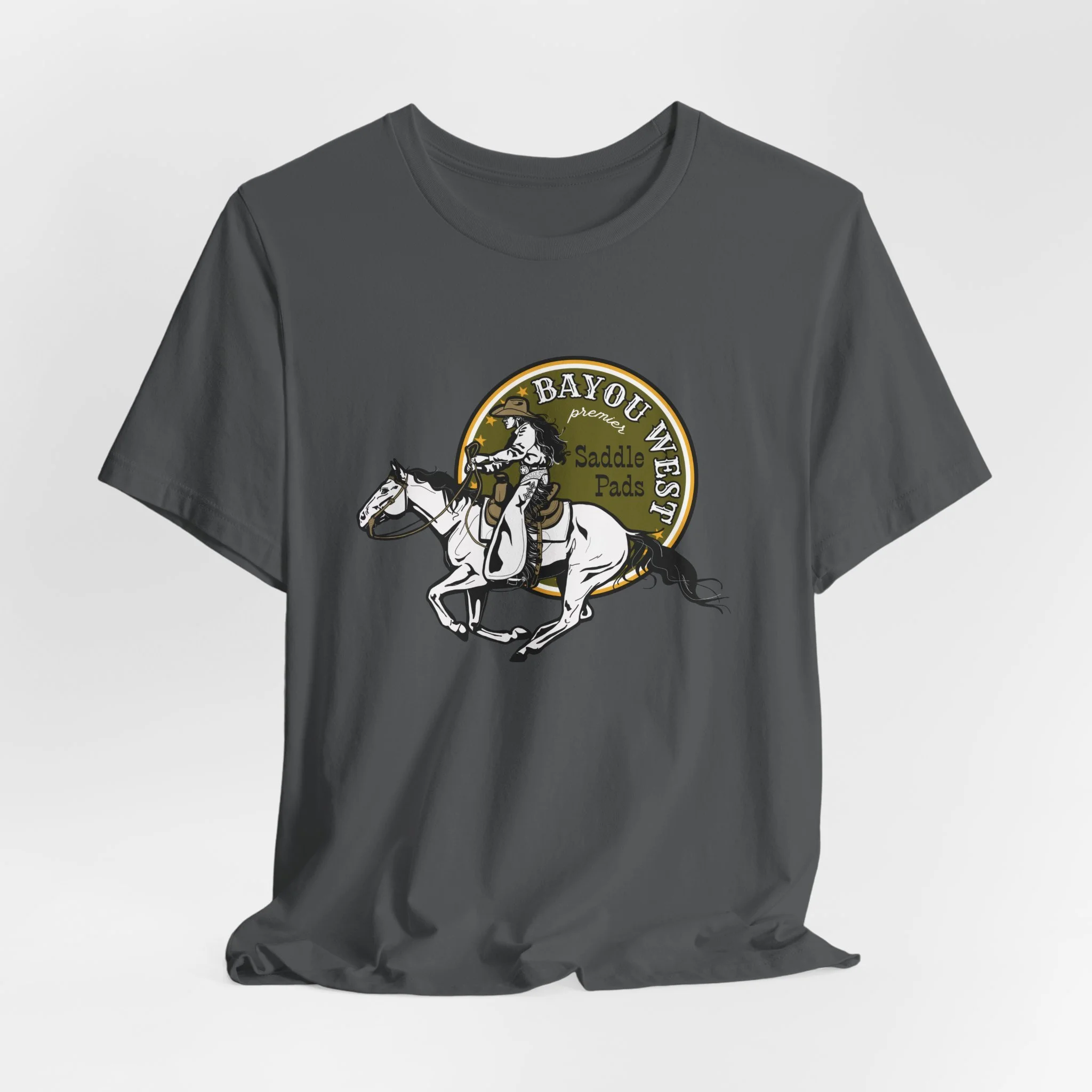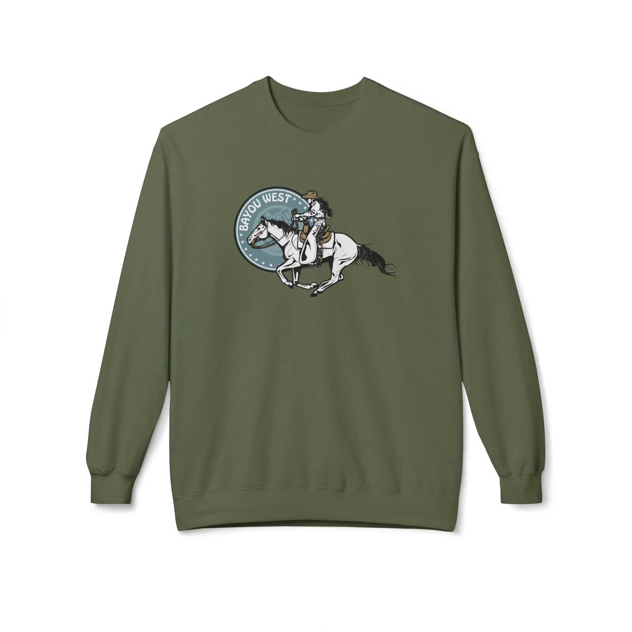 Shop Our Exclusive Collection Galloping Cowgirl Bayou Green - Unisex Jersey Short Sleeve Tee $32.00 View Options Bucking Horse Bayou Yellow - Unisex Midweight Softstyle Fleece Hoodie $55.00 View Options Galloping Cowgirl Dusty Teal - Unisex Midweight Softstyle Fleece Crewneck Sweatshirt $49.00 View Options Galloping Cowgirl Bayou Green - Unisex Midweight Softstyle Fleece Hoodie $55.00 View Options Galloping Cowgirl Bayou Green - Unisex Jersey Tank $28.00 View Options Bucking Horse Bayou Yellow - Unisex Jersey Short Sleeve Tee $32.00 View Options Bayou West Grayscale Logo - Unisex Jersey Short Sleeve Tee $29.00 View Options Galloping Cowgirl Back, Front Chest Logo - Unisex Heavy Blend™ Full Zip Hooded Sweatshirt $69.00 View Options Galloping Cowgirl Black - Unisex Jersey Muscle Tank $29.00 View Options Bayou West Logo Snapback Trucker Cap $34.00 View Options